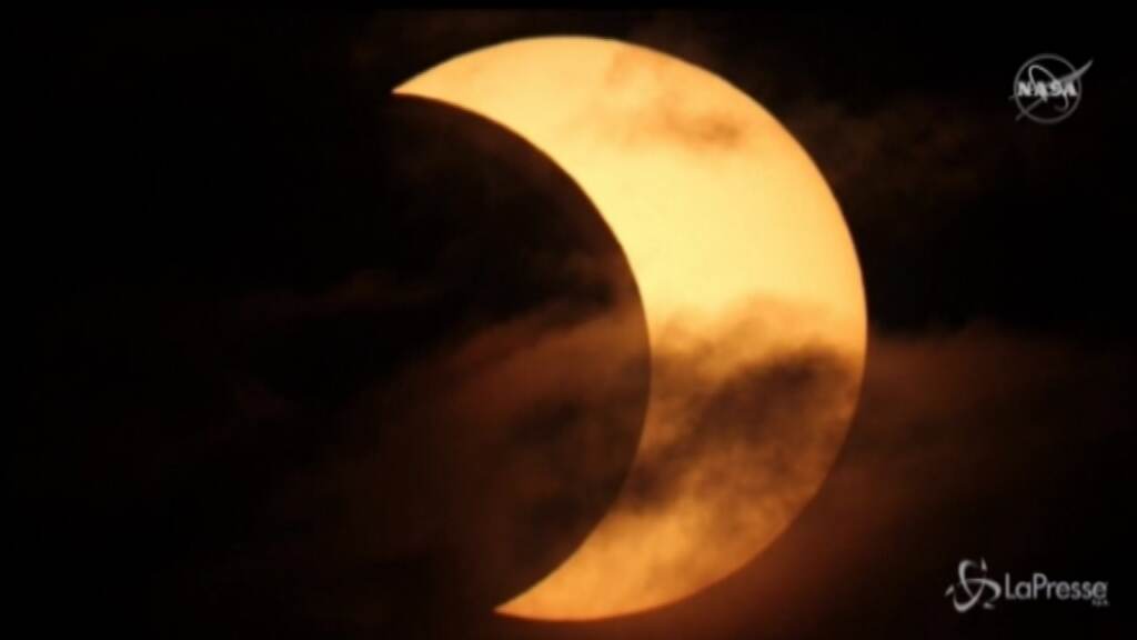 Un’eclissi anulare di Sole, parziale, ha tenuto tutti con il naso all’insù nel nord degli Stati Uniti e in parte del Canada all’alba. L’eclissi non era visibile a occhio nudo, ma solo attraverso speciali lenti. Era visibile anche dall’Italia all’ora di pranzo: per circa 90 minuti la Luna ha parzialmente oscurato il sole. Le immagini (credit: Luc Boulard of The Royal Astronomical Society of Canada) mostrano il sole in parte coperto dal satellite.