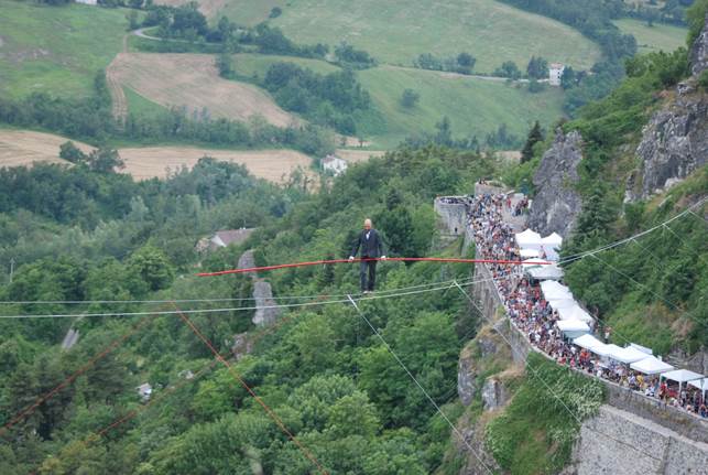 Cirko Vertigo, da vent’anni centro internazionale di creazione e produzione di spettacoli ed eventi, polo di alta formazione professionale nell’ambito delle arti circensi e residenza per giovani artisti, ha chiamato a raccolta per l’occasione i migliori artisti del settore, fra cui Andrea Loreni, unico funambolo italiano specializzato nelle traversate su cavo a grandi altezze che sulla diga di Ceresole compirà la traversata più lunga della sua carriera: Loreni, che è stato allievo del primo corso della scuola professionale fondata da Paolo Stratta, direttore di Fondazione Cirko Vertigo, camminerà su un cavo lungo più di 300 metri e sospeso a 20 metri di altezza, il tutto con il solo ausilio di un bilanciere.