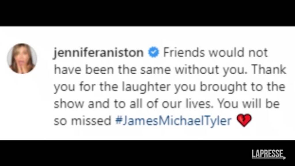 “La grandezza della gratitudine che hai portato sul set e che hai mostrato ogni giorno è la grandezza della gratitudine che ho per averti conosciuto. Riposa in pace James”, il commovente post di Courteney Cox, Monica Geller nella sitcom. “James Michael Tyler, ci mancherai. Grazie per esserci stato per tutti noi”, ha scritto invece Lisa Kudrow, Phoebe Buffay in ‘Friends’.”Ci siamo fatti un sacco di risate, amico. Ci mancherai. RIP amico mio”, il pensiero di Matt LeBlanc, Joey nella serie.