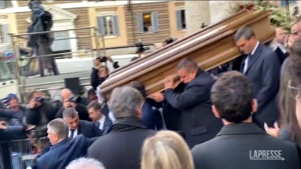 Il feretro di Maurizio Costanzo esce dalla chiesa degli Artisti, a Roma, accompagnato dalle note della sigla del suo show. Ad accompagnarlo ci sono gli applausi di Maria De Filippi, dei figli, degli amici e della folla gremita fuori dalla chiesa. Tantissime persone hanno atteso il termine della messa per dare l’ultimo saluto al giornalista, conduttore e sceneggiatore morto il 24 febbraio scorso.