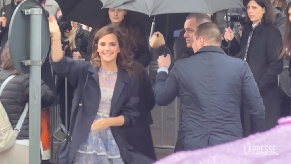 Fan in delirio per l’arrivo di Emma Watson alla sfilata donna autunno-inverno di Prada. Bagno di folla anche per la cantante Jeon Somi, l’attrice e supermodella Hunter Schafer, la star statunitense di Youtube Emma Chamberlain e l’attrice Kim Tae-ri.