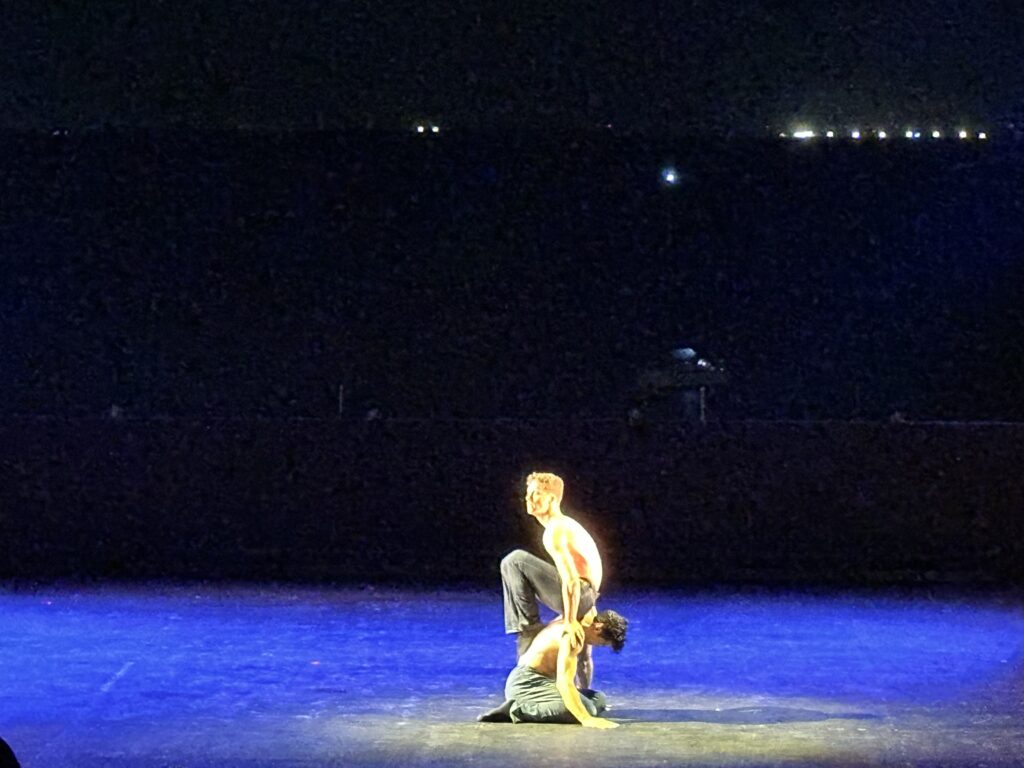 Oltre ottanta minuti di passi a due e assoli che hanno strappato applausi a scena aperta.La serata è stata aperta da uno speciale intervento musicale, dal titolo Stella di Tharros, che ha coinvolto il sassofonista nuorese Gavino Murgia, insieme a Jarrod Cagwin alle percussioni, che insieme hanno dato vita ad una colonna sonora per un assolo dell’étoile della Scala di Milano: un omaggio al territorio che ha ospitato lo spettacolo per celebrare il cinquantesimo anniversario dal ritrovamento del complesso statuario di Mont’e Prama. “Questa collaborazione è nata l’anno scorso, a novembre, quando ci hanno chiamato, distintamente, per esibirci per uno spettacolo in seno alla candidatura di Roma all’Expo 2030. Ci siamo confrontati con il coreografo e il management e da lì è nata la composizione”, spiega Murgia.Il gala di Roberto Bolle and Friends, un viaggio attraverso stili e scuole differenti capace di mescolare molteplici emozioni – il divertimento e il dramma, l’ironia e l’eleganza, il classico e il contemporaneo – è quindi proseguito con Esmeralda, poi il pas de deux maschile Les Indomptés datato 1992 del coreografo francese Claude Brumachon su musiche di Wim Mertens e ripresa coreografica di Benjamin Lamarche.
