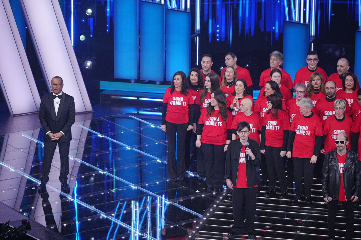 Sul palco dell’Ariston è il momento delle ragazze e dei ragazzi dell’Anffas (Associazione Nazionale di Famiglie e Persone con disabilità intellettive e disturbi del neurosviluppo) di La Spezia che si esibisce in una riuscitissima ‘Si può dare di più’ alla quale nel corso dell’esibizione si è unita anche Laura Pausini: “Posso solo dire una cosa, alla faccia di tutti questi leoni da tastiera questa sera c’è Laura con noi”, dice il loro leader Simi. “Loro sono la dimostrazione che chi crede nei sogni può realizzarlo”, le parole della cantante, amatissima dai ragazzi sul palco.