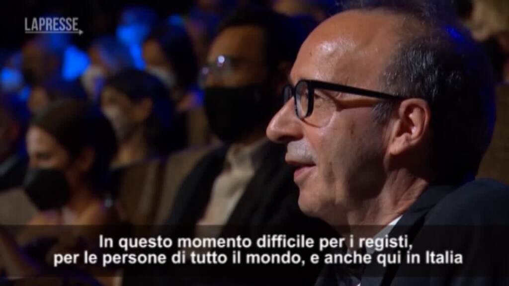 (LaPresse) Roberto Benigni ha ricevuto il Leone d’Oro alla carriera durante la cerimonia inaugurale della 78esima Mostra del Cinema di Venezia. A consegnargli il premio la regista Jane Campion che ha commentato: “In questo difficile momento per i registi e per le persone in tutto il mondo, Roberto Benigni è necessario”. L’attore e regista italiano sul palco ha replicato:”Grazie per quello che hai detto, è indimenticabile”.