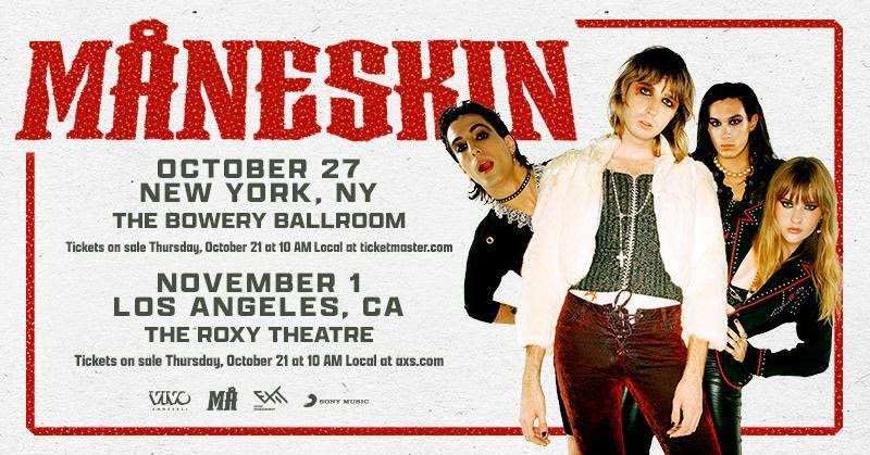 (LaPresse) I Måneskin alla conquista anche degli Stati Uniti. La band romana ha annunciato due concerti oltreoceano: mercoledì 27 ottobre 2021 suoneranno al Bowery Ballroom di New York e lunedì 1 novembre al Roxy Theatre di Los Angeles. Non solo: Victoria, Damiano, Thomas e Ethan saranno ospiti il 26 ottobre dell’iconico Tonight Show di Jimmy Fallon, che segnerà il loro debutto televisivo americano.