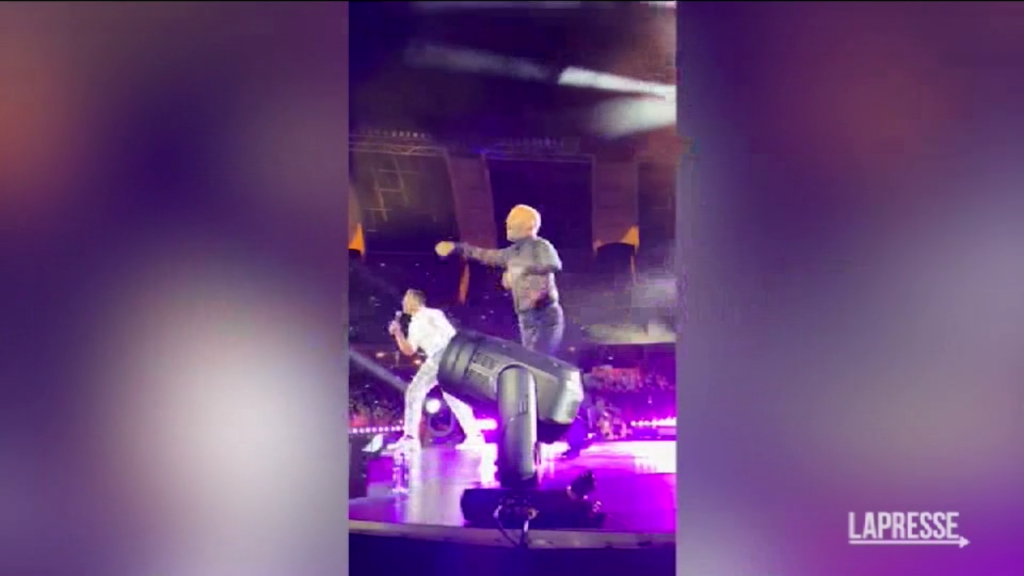 Giuliano Sangiorgi, cantante dei Negramaro, ospite a sorpresa nel concerto di Tiziano Ferro allo stadio San Nicola di Bari. Dopo il primo duetto tra i due, sulle note di ‘Non me lo so spiegare’, Ferro e Sangiorgi hanno regalato al pubblico la loro versione di ‘Estate’, famosissimo brano della band salentina.