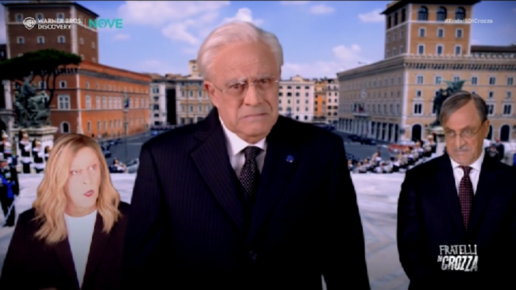 Maurizio Crozza nei panni di Sergio Mattarella davanti all’Altare della Patria, a Roma, nel giorno della festa della Liberazione. Il comico ligure ha imitato il presidente della Repubblica ma anche la premier Giorgia Meloni e il presidente del Senato Ignazio La Russa mentre veniva deposta la corona d’alloro in occasione del 25 aprile. “Io qui in mezzo a sti due… ma questa non era la festa della Liberazione da quelli come sti due? Vabbè dai, l’appoggio… tanto il prossimo anno vado sul Nove!“, ha detto lo showman nello sketch andato in onda sul canale Nove nel programma ‘Fratelli di Crozza’.