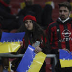La bandiera e i colori dell’Ucraina colorano tutti i campi da gioco. L’omaggio di giocatori e tifosi