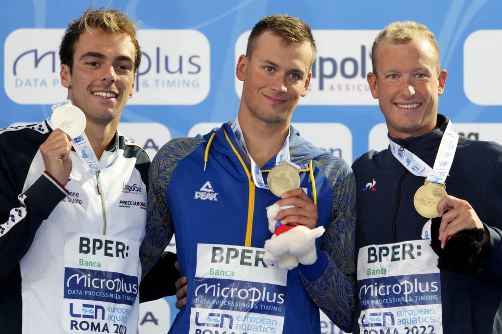 Una piccola delusione per l’oro mancato di Gregorio Paltrinieri, superato nei 1.500 dal fortissimo ucraino Romanchuk, segna una giornata comunque ancora ricca di medaglie per l’Italnuoto agli Europei di Roma. Oltre all’argento di Greg, straordinaria doppietta nei 50 rana, oro e argento con Martinenghi e Cerasuolo, un altro oro per Margherita Panziera nei 100 dorso, due bronzi da Razzetti nei 200 delfino e Franceschi nei 200 misti femminili. La giornata si chiude con il bronzo nella 4×200 stile libero mixed, con Stefano Di Cola, Matteo Ciampi, Alice Nizzau e Antonietta Cesarano, alle spalle di Gran Bretagna e Francia. Soddisfazioni anche dai tuffi, con l’oro e il bronzo di Bertocchi e Pellacani nel trampolino da un metro donne, e un bronzo anche dalla piattaforma mixed, con Timbretti e Di Maria.