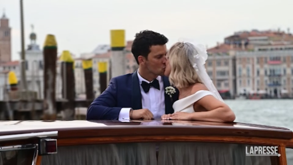 (LaPresse) Federica Pellegrini e Matteo Giunta in motoscafo nella Laguna di Venezia dopo il matrimonio. I coniugi si spostano verso il ricevimento di nozze in barca, scambiandosi un bacio. La cena, per la quale sono previsti circa 160 invitati, si terrà al Jw Marriott Venice Resort dell’Isola delle Rose.