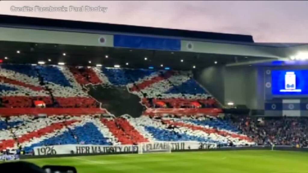 Prima di Glasgow Rangers-Napoli, gara di Champions League, è stato osservato un minuto di silenzio all’Ibrox Park di Glasgow, per rendere omaggio la Regina Elisabetta II, scomparsa l’8 settembre scorso all’età di 96 anni. I tifosi scozzesi hanno omaggiato la sovrana con una splendida coreografia.