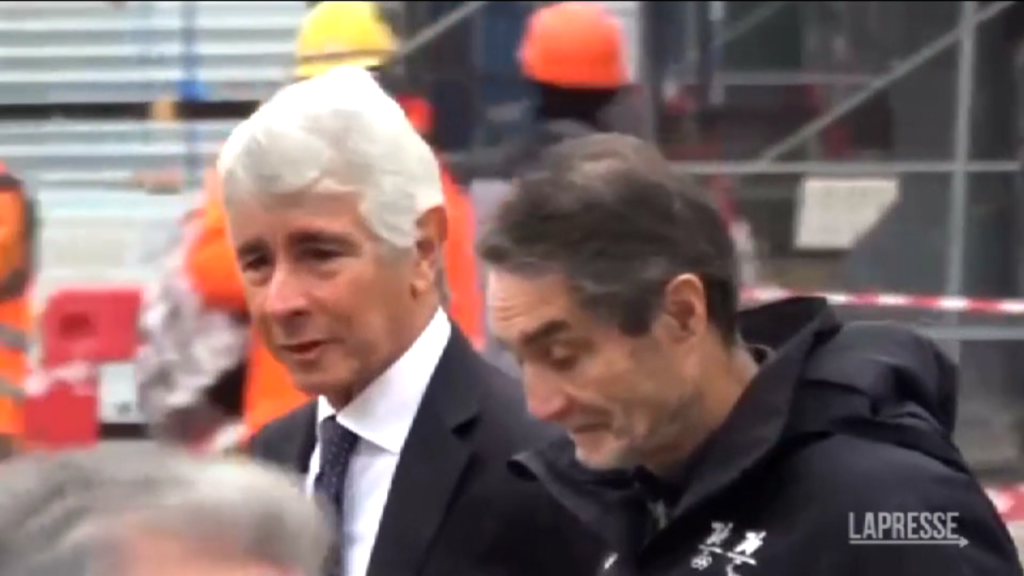 Il ministro dello Sport Andrea Abodi in visita a Milano ai lavori del villaggio olimpico in Porta Romana in vista dei Giochi invernali del 2026. Con lui anche il sindaco del capoluogo meneghino, Beppe Sala, e il governatore della Lombardia, Attilio Fontana.