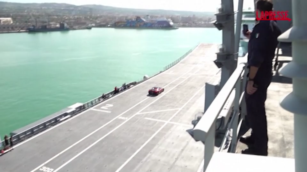 Nuova impresa di Fabio Barone, pilota romano che a bordo di una Ferrari ha sfrecciato a 164 km/h sul ponte della Nave Trieste della Marina Militare Italiana. L’anno scorso, Barone ha stabilito il record della Federazione Italiana Cronometristi su un’altra portaerei nel sud Italia, raggiungendo i 152 chilometri all’ora. Giovedì ha ritoccato il suo primato nell’evento che si è svolto al porto di Civitavecchia, alla guida di una Ferrari SF90 Stradale.