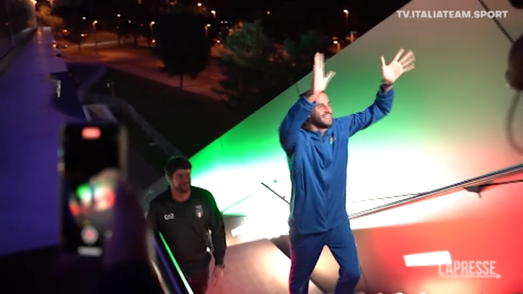 Ovazione per Gianmarco Tamberi al suo arrivo a Casa Italia dopo la straordinaria medaglia d’oro conquistata nel salto in alto agli Europei di Monaco. “Ce l’abbiamo fatta!”, ha urlato Gimbo, con la sua dirompente simpatia, tra gli applausi degli altri atleti azzurri e di tutti i presenti. Tamberi ha poi posato per le foto di rito.
