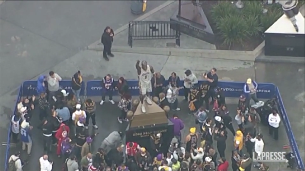 I Los Angeles Lakers hanno inaugurato una nuova statua di Kobe Bryant: un’immagine di bronzo di quasi sei metri all’esterno della loro arena in centro città. La statua, che pesa 4.000 chili, raffigura Bryant con la sua maglia bianca numero 8 e il dito indice destro alzato, riprendendo la scena di quando uscì dal campo dopo la sua prestazione da 81 punti contro i Toronto Raptors nel gennaio 2006. La vedova di Bryant, Vanessa, ha dichiarato durante la cerimonia di inaugurazione che la statua è la prima di tre che verranno create per onorare il cinque volte campione NBA e star della storia dei Lakers. Un’altra statua raffigurerà Bryant con la sua maglia numero 24, indossata nella seconda metà della sua carriera, mentre una terza raffigurerà Bryant e la figlia Gianna, morta insieme a lui e ad altre sette persone in un incidente in elicottero nel gennaio 2020