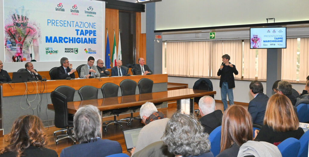 Le Marche si preparano a vivere un anno all’insegna del grande ciclismo, ospitando quattro eventi di rilevanza internazionale: la 60ª edizione della Tirreno-Adriatico, il Giro d’Italia maschile, il Giro d’Italia Women e il Giro-E, con biciclette a pedalata assistita. Tutti Eventi organizzati RCS Sport, insieme alla Regione Marche e ad ATIM. La conferenza stampa di presentazione si è svolta questa mattina a Palazzo Li Madou, nella sede della Regione Marche, presieduta dal presidente della Regione Marche Francesco Acquaroli e da Mauro Vegni, direttore Area Ciclismo RCS Sport.
