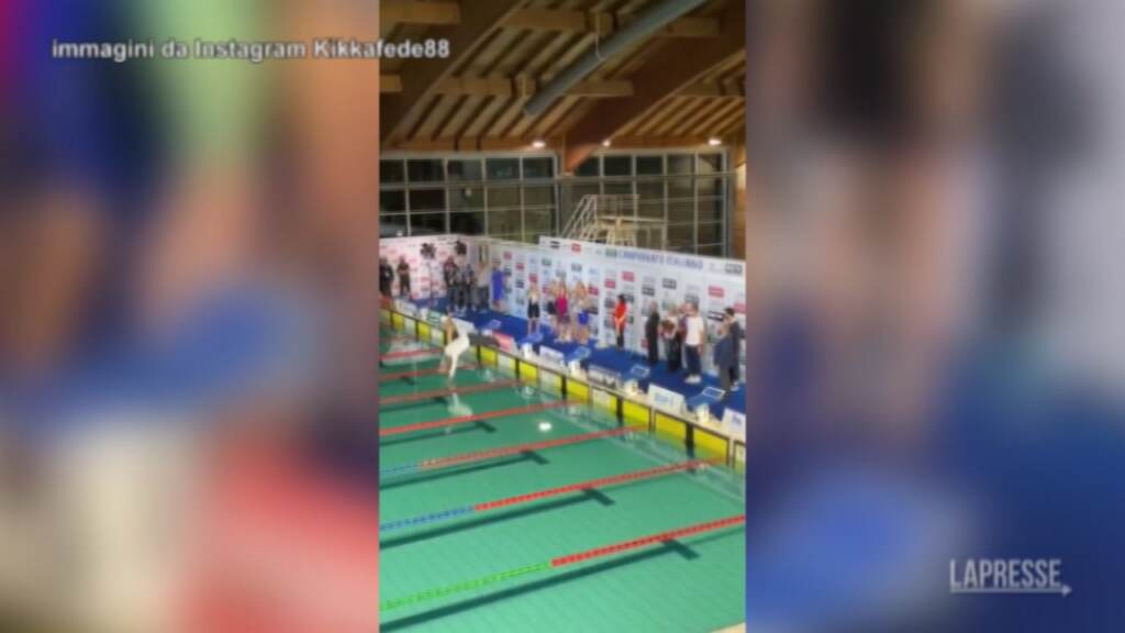(LaPresse) Lacrime e commozione all’ultima gara di Federica Pellegrini nei ‘suoi’ 200 stile allo Stadio del Nuoto di Riccione, per gli Assoluti Invernali. Dopo la vittoria con il tempo di 1’54″95 e la passerella con le rivali di sempreun simpatico fuori programma: la ‘Divina’ si è tuffata in piscina insieme al presidente del Coni Giovanni Malagò, in camicia e pantaloni. “Me l’aveva promesso”, ha raccontato poi la campionessa veneta. DISTRIBUTION FREE OF CHARGE – NOT FOR SALE