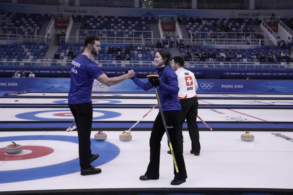 In ogni caso non è stato agevole il compito degli azzurri nel primo match di giornata. L’Australia di Dean Hewitt e Tahli Gill infatti, seppur sempre sconfitta sin qui nel torneo olimpico, ha giocato una gara gagliarda arrendendosi solo nella fase finale dell’incontro. Dopo la mano rubata dagli avversari al primo end, il tandem tricolore ha firmato due punti nel secondo rubando poi la mano nel terzo. Da lì un solo punto a testa fino alla sesta ripresa con il parziale fermo sul 4-3 per i nostri. Poi il decisivo settimo end in cui l’Italia ha realizzato tre punti portandosi sul 7-3 e costringendo gli australiani alla resa nell’ottavo. Qualche ora più tardi il National Acquatic Center ha ospitato il big match contro Bruce Mouat e Jennifer Dodds: partita tesa fin dall’inizio con un solo punto per parte nei primi due end. Al terzo la Gran Bretagna ruba la mano ma gli azzurri vanno poi a segno con due marcature nel quarto. Nel quinto end prosegue il momento positivo della coppia tricolore che ruba la mano, salvo poi subire due punti nel sesto. Il capolavoro alla settima ripresa con Constantini che finalizza con un tiro spettacolare un end condotto magistralmente e che regala 3 punti all’Italia. Non riesce così la rimonta a Mouat e Dodds nell’ottavo, con un punto britannico che fissa soltanto il risultato sul 7-5 finale. A guardare tutti dall’alto al basso, in questo momento, c’è una coppia italiana.