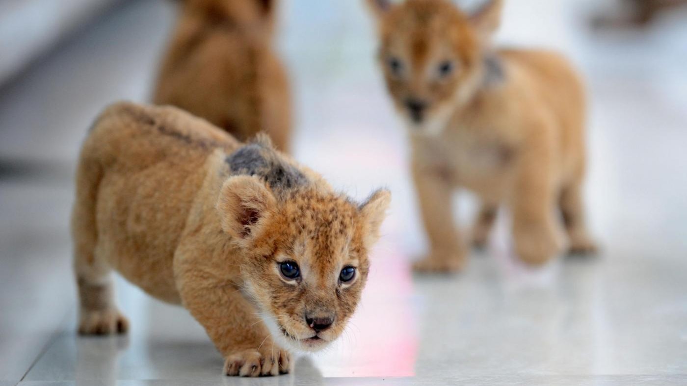 Tre cuccioli di leone giocano nel Guaipo Siberian Tiger Park di Shenyang, nel nord della Cina. I leoncini dell’età di un mese hanno commosso il web, le loro foto hanno fatto il giro di siti e social network. Shenyang è il capoluogo della provincia del Liaoning, e la più popolosa città della Cina nord-orientale. Nel 2012 il Guaipo Siberian Tiger Park di Shenyang era salito agli onori delle cronache perché una sua leonessa aveva dato alla luce si cuccioli, stabilendo un nuovo record nazionale per il maggior numero di leoncini nati nella stessa cucciolata.