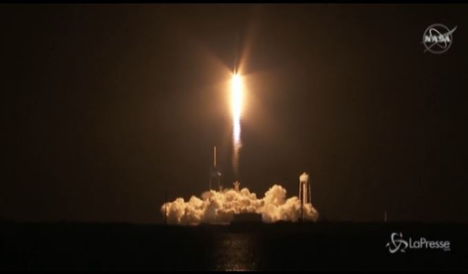 (LaPresse) Il countdown del lancio del razzo Falcon, decollato dal Kennedy Space Center, a Cape Canaveral, in Florida, negli Usa, con tre americani e un giapponese, il secondo equipaggio di austronauti ad essere lanciato da SpaceX. La navicella Crew Dragon, chiamata ‘Resilience’ dal suo equipaggio alla luce delle numerose sfide di quest’anno, in particolare il Covid-19, ha raggiunto l’orbita nove minuti dopo. Dovrebbe raggiungere la Stazione spaziale internazionale lunedì tardi e rimanervi fino a primavera.