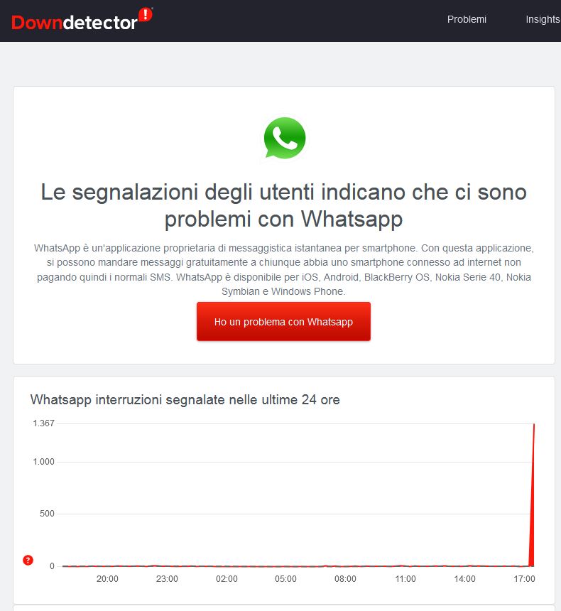 Secondo il sito DownDetector.it a essere più colpite in Italia sono le zone di Roma e Milano, naturalmente anche per numero di utenti.
