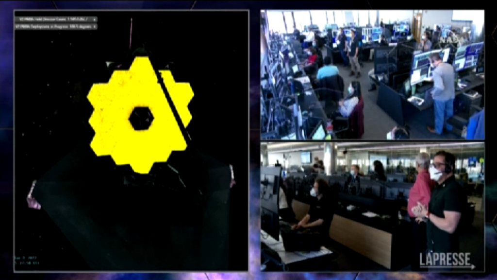 “Sono emozionato. Che incredibile pietra miliare”, ha detto Thomas Zurbuchen, capo delle missioni scientifiche della Nasa. Più potente del telescopio spaziale Hubble, il Webb da 10 miliardi di dollari scansionerà il cosmo alla ricerca della luce proveniente dalle prime stelle e galassie formatesi 13,7 miliardi di anni fa. Per farlo, la Nasa ha dovuto dotare Webb del più grande e sensibile specchio mai lanciato, il suo “occhio d’oro”, come lo chiamano gli scienziati. La grafica della Nasa mostra l’apertura completa del telescopio.