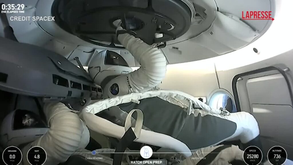 Passeggiata spaziale per l’imprenditore tecnologico Jared Isaacman che ha lasciato la Terra a bordo di una capsula di Space X per un viaggio privato di cinque giorni. Assieme a lui tre astronauti esperti che lo hanno accompagnato nella sua avventura tra le stelle, finanziata dallo stesso Isaacman oltre che da Space X con l’obiettivo anche di testare l’attrezzatura in dotazione (tute spaziali comprese) per far progredire l’esplorazione dello spazio. La passeggiata ha una durata programmata di circa due ore. Sono partiti martedì dalla Florida, lanciandosi più lontano dalla Terra di chiunque altro dai tempi delle missioni della Nasa sulla Luna. L’orbita è stata poi ridotta sino a 737 chilometri per la passeggiata spaziale.