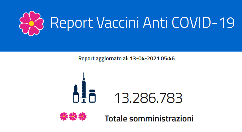 Sono 13.286.783 le dosi di vaccino somministrate in Italia fino ad ora, pari all’ 85,3% delle dosi consegnate (15.575.830). La Lombardia è la regione che ha ricevuto e somministrato il maggior numero di dosi con 2.080.705 dosi inoculate su 2.529.240 vaccini ricevuti (82,3%). Seguono il Lazio con 1.325.998 dosi inoculate sul 1.529.800 ricevute (85,1%) e l’Emilia Romagna che ha ricevuto 1.289.060 vaccini e ne ha somministrati 1.135.663.