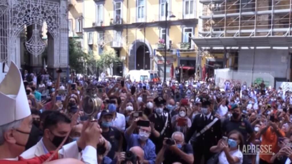(LaPresse) – San Gennaro ha ripetuto il miracolo, intorno alle ore 10 il cardinale di Napoli, Mimmo Battaglia, dall’altare del Duomo cittadino ha proclamato lo scioglimento del sangue. Anche quest’anno, per le norme anti covid, l’ingresso in chiesa è stato contingentato a 450 posti, mentre all’esterno sono stati previsti circa 300 posti a sedere, ma per la cerimonia non è stato previsto l’obbligo di Green Pass. Via Duomo è stata chiusa al traffico e il tratto davanti la cattedrale interdetto anche al passeggio, per evitare assembramenti, che però si sono creati all’altezza delle barriere poste dalle Forze dell’Ordine. Molti fedeli, rimasti lontani dal Duomo, hanno lamentato una cattiva organizzazione in quanto le attese per avvicinarsi alla cattedrale sono state anche di oltre un’ora.