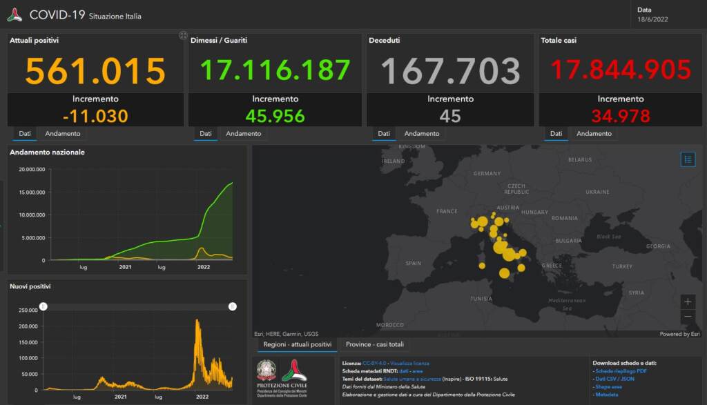 Covid, il bollettino del 18 giugno: 34.978 nuovi casi e 45 decessi