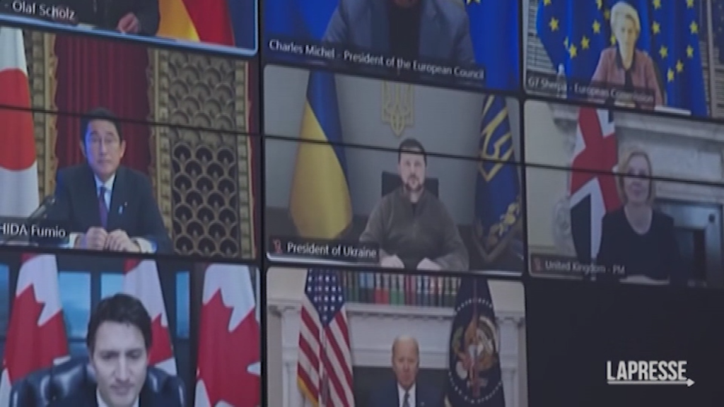 (LaPresse) – Il presidente ucraino Volodymyr Zelensky ha partecipato alla riunione del G7 in videoconferenza, convocata dopo l’escalation del conflitto. Il capo dello stato di Kiev è stato introdotto dal cancelliere tedesco leader Olaf Scholz. Al summit virtuale hanno preso parte anche il presidente Usa Joe Biden, quello francese Emmanuel Macron, il presidente del Consiglio Mario Draghi e la nuova premier britannica Liz Truss.