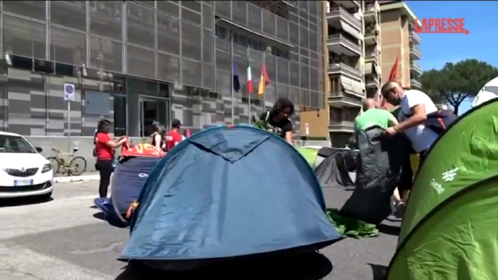 Il Movimento per il diritto all’abitare si accampa con le tende davanti alla sede del Dipartimento Valorizzazione del Patrimonio e Politiche Abitative di Roma Capitale, nel quartiere Garbatella. In tarda mattinata l’associazione si è data appuntamento in Piazza Giovanni da Verrazzano per trasferirsi con alcune centinaia di persone sfrattate, a rischio sfratto o senza fissa dimora davanti agli uffici di Roma Capitale. I manifestanti chiedono un incontro con l’assessore al Patrimonio e alle Politiche abitative Tobia Zevi oltre allo sblocco delle graduatorie per l’assegnazione delle case popolari: “A Roma ci sono più sfratti che assegnazioni, dove vanno a vivere queste persone? Serve l’attuazione del piano casa e lo sblocco delle graduatorie perché la casa è un diritto. C’è anche il tema degli affitti brevi che stanno svuotando a città dai suoi abitanti, possibile che New York abbia messo dei limiti e Roma no?” dice Cristiano Armati del movimento.