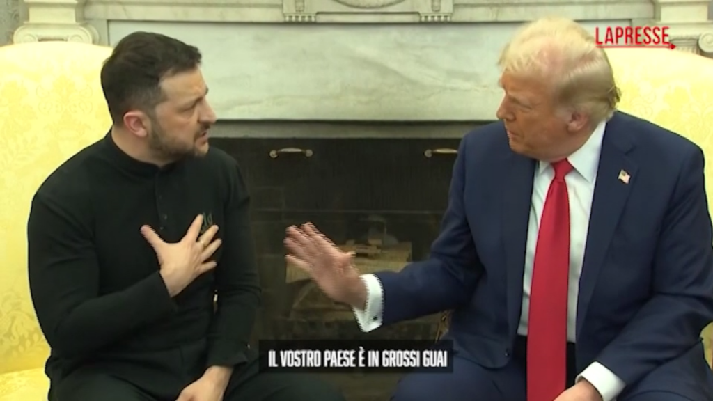 “Il tuo Paese ha un grosso problema. Voi non state vincendo la guerra, avete la possibilità di vincerla grazie a noi”. Così il presidente americano Donald Trump al leader ucraino Volodymyr Zelensky durante lo scontro nello Studio Ovale della Casa Bianca. “Senza le armi americane la guerra sarebbe finita in due settimane”, ha detto detto ancora il Tycoon.