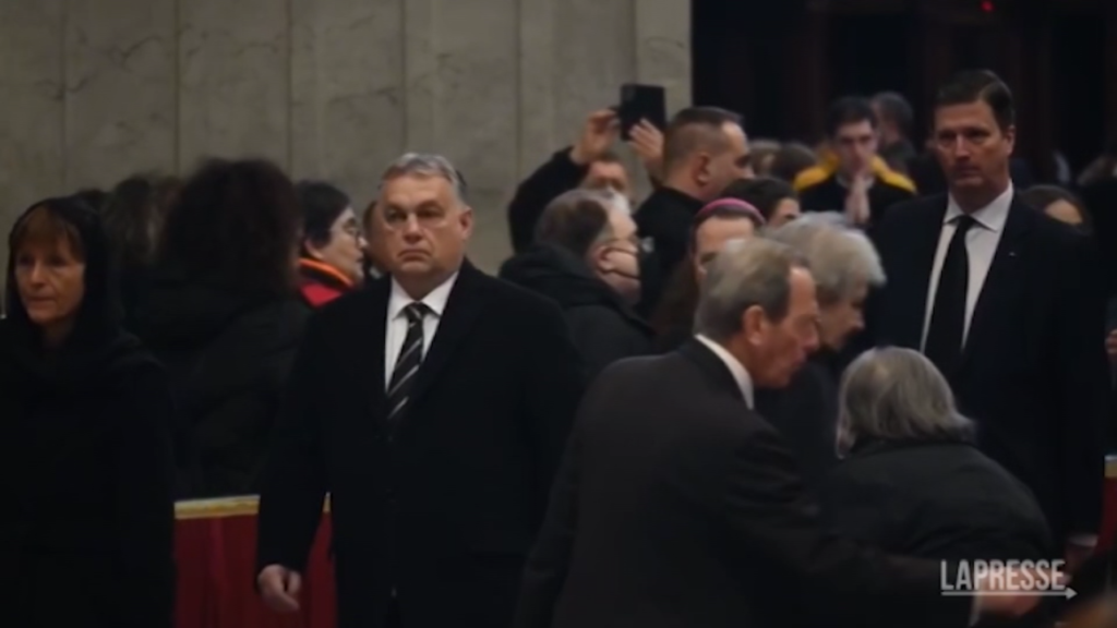 (LaPresse) – Anche il premier ungherese Viktor Orbán nella basilica di San Pietro con la moglie per omaggiare le esequie del Papa emerito Benedetto XVI.