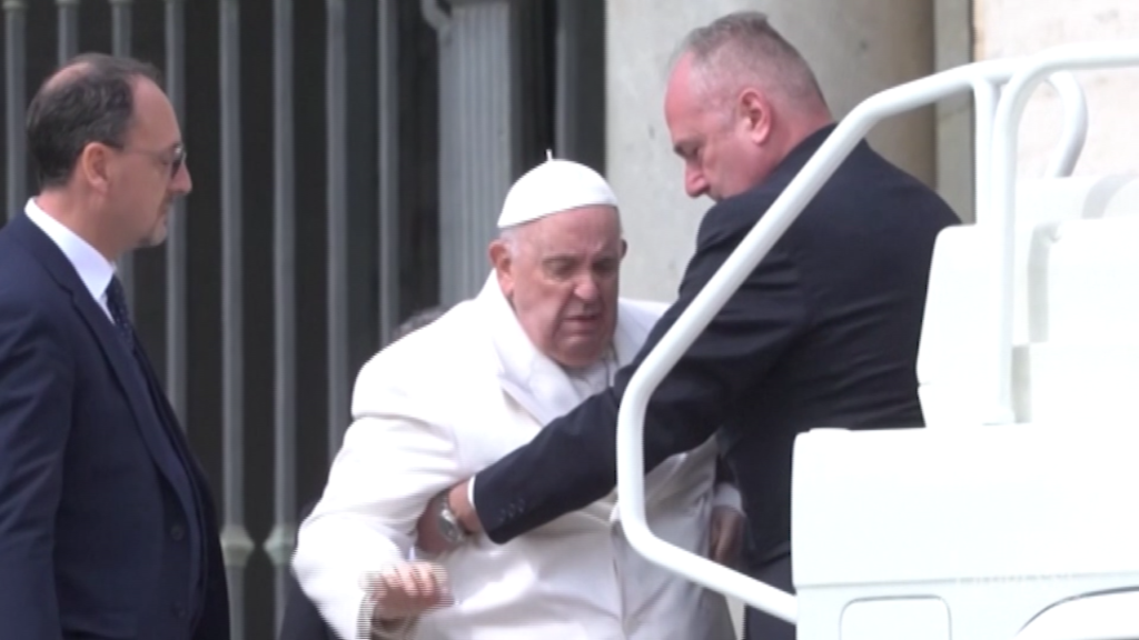 Francesco affaticato mentre sale sulla Papamobile. Le immagini, registrate ieri, mostrano il Pontefice in piazza San Pietro, in Vaticano, prima del ricovero all’ospedale Gemelli di Roma a causa di difficoltà respiratorie. A quanto apprende LaPresse da fonti ospedaliere ha passato una notte tranquilla ed è in corso una terapia che procederà nei prossimi giorni. Il Papa avrebbe iniziato ad avvertire un dolore al petto subito dopo l’udienza generale tenuta in piazza San Pietro, mentre già si trovava nella sua residenza a Santa Marta.
