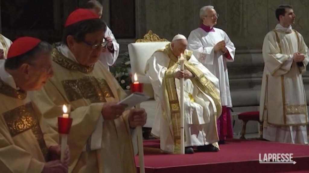 Veglia di Pasqua nella Basilica di San Pietro per Papa Francesco davanti a circa 8 mila fedeli. “Non restiamo impotenti di fronte al male e alle guerre” ha detto nell’omelia Bergoglio che oggi celebrerà la messa prima del tradizionale messaggio ‘Urbi et Orbi’.