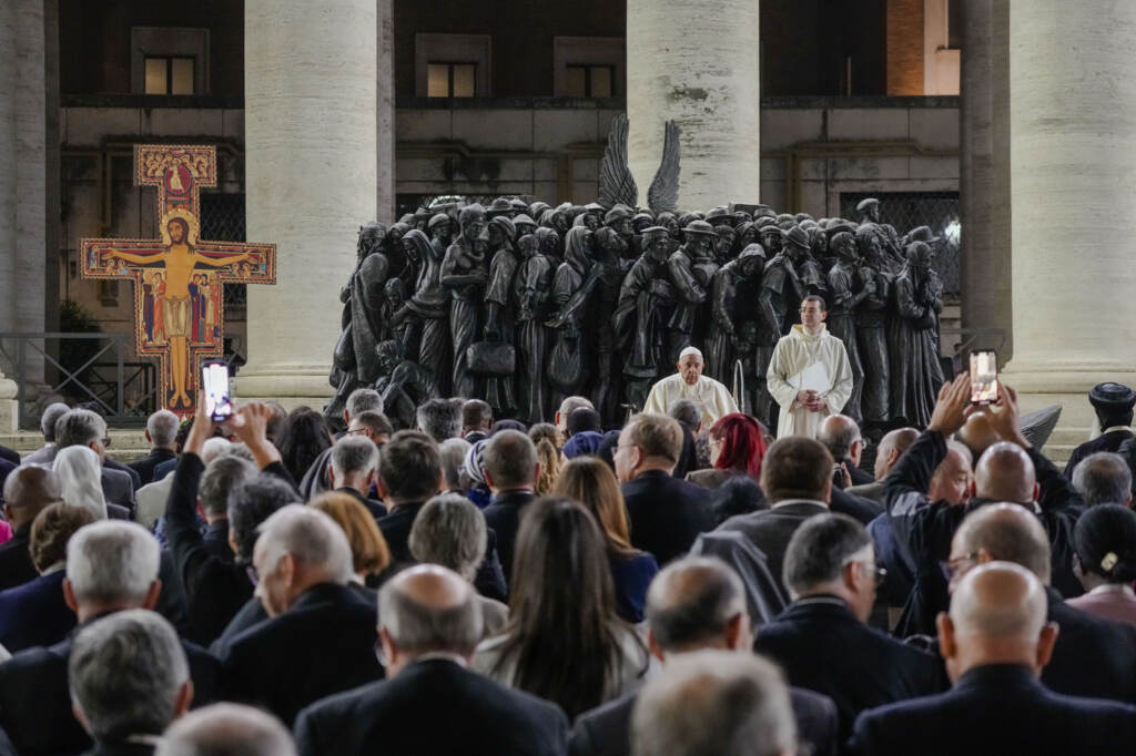 Papa Francesco si è recato in piazza San Pietro per una preghiera per i migranti, convocata nell’ambito della 16.a assemblea del Sinodo dei vescovi in corso in Vaticano. Circa 600 le persone presenti che si sono poste, insieme al Pontefice, di fronte al monumento al migrante sul lato della piazza.