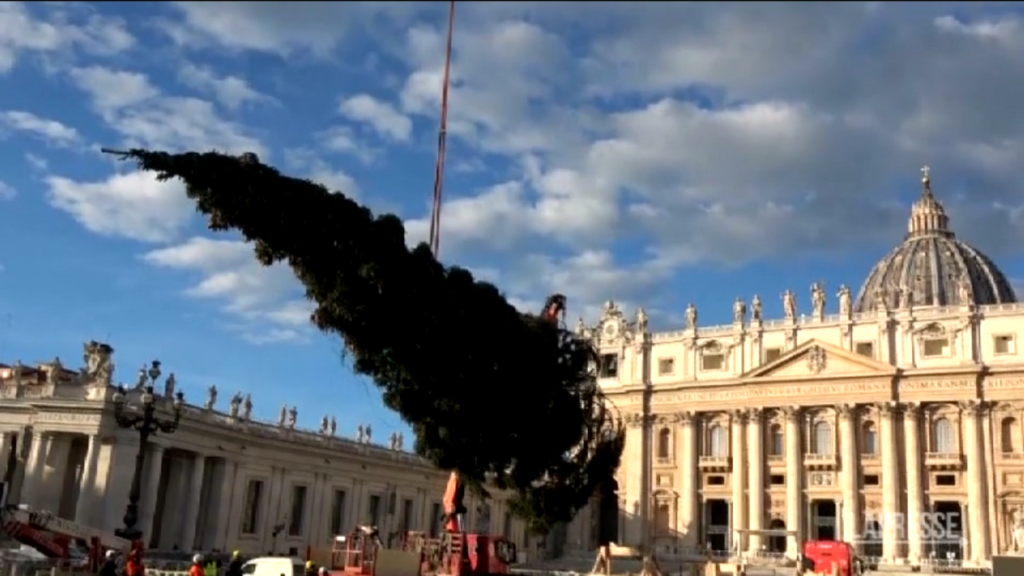 È arrivato nella notte tra mercoledì e giovedì dai boschi del Cuneese, l’abete di 27 metri scelto dal Vaticano come albero di Natale. L’albero è stato alzato dal camion che lo trasportava con l’ausilio di due gru ed è stato posizionato nella base costruita al centro di Piazza San Pietro. Sarà addobbato e poi acceso il 9 dicembre.