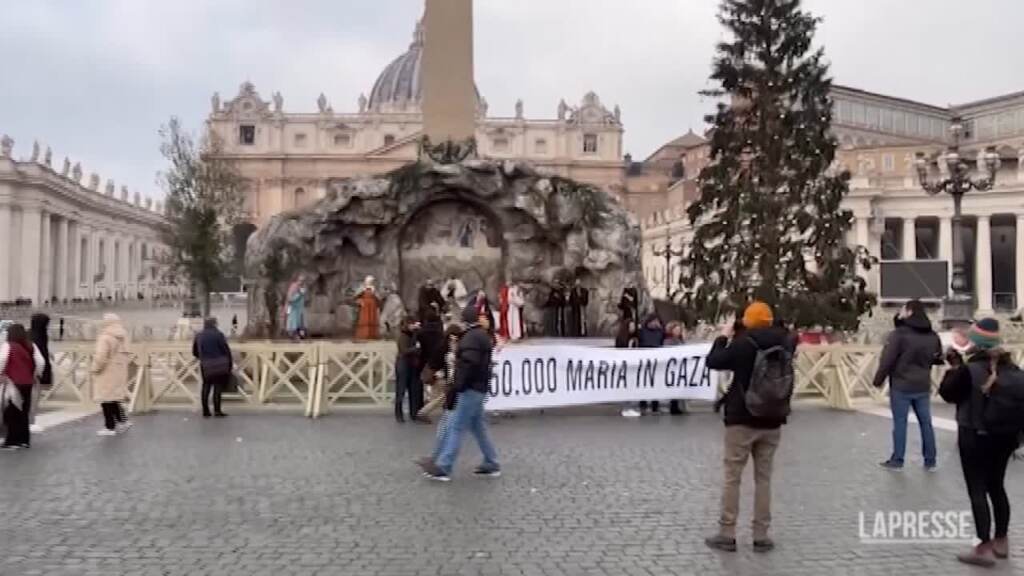 Un gruppo di dimostranti ha attuato un flash mob in Piazza San Pietro di fronte al presepe, a sostegno delle donne palestinesi incinte di Gaza, dove è in corso il violento conflitto tra Israele e Hamas con i pesanti bombardamenti dello Stato ebraico. I manifestanto con bandiere palestinesi e della pace hanno esposto uno striscione in inglese con la scritta ‘50mila Maria a Gaza‘. In Vaticano il Papa ha tenuto l’udienza generale durante la quale ha condannato le guerre. “Sempre sono una sconfitta. Guadagnano soltanto i fabbricatori delle armi. Per favore pensiamo alla Palestina, a Israele”, le parole del Pontefice.