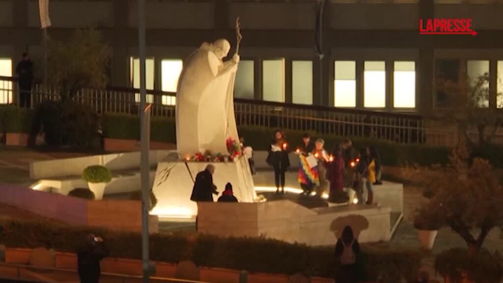 Un gruppo di fedeli si è riunito fuori dal Policlinico Gemelli di Roma, dove Papa Francesco è ricoverato da venerdì per una polmonite che si è aggravata. “Gli esami di laboratorio, la radiografia del torace e le condizioni cliniche del Santo Padre continuano a presentare un quadro complesso” ma “Papa Francesco è di umore buono. Ringrazia per la vicinanza che sente in questo momento e chiede, con animo grato, che si continui a pregare per lui”, ha dichiarato il Vaticano.