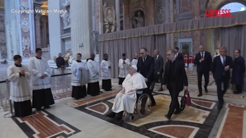 Papa Francesco si è recato in preghiera nella Basilica di San Pietro in questa Domenica delle Palme. Come comunicato dal Vaticano il Pontefice si è fermato in preghiera “alla tomba dell’Apostolo e davanti a quella di Benedetto XV”. Francesco ha salutato anche alcuni curiali: Gleison de Paula Souza, padre Enzo Fortunato e il cardinale Luis Antonio Gokim Tagle, alcune persone e una bambina presente. Copyright Vatican Media