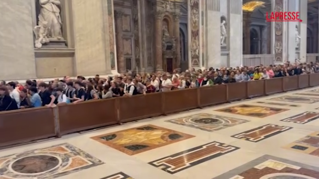 Una folla di centinaia di persone in coda ha formato un lungo serpentone all’interno della Basilica di San Pietro per rendere omaggio al feretro di Papa Francesco. La lunga attesa non scoraggia i fedeli che si mettono ordinatamente in fila per poi sostare solo pochi secondi al cospetto della salma del Pontefice ed essere indirizzati verso l’uscita.