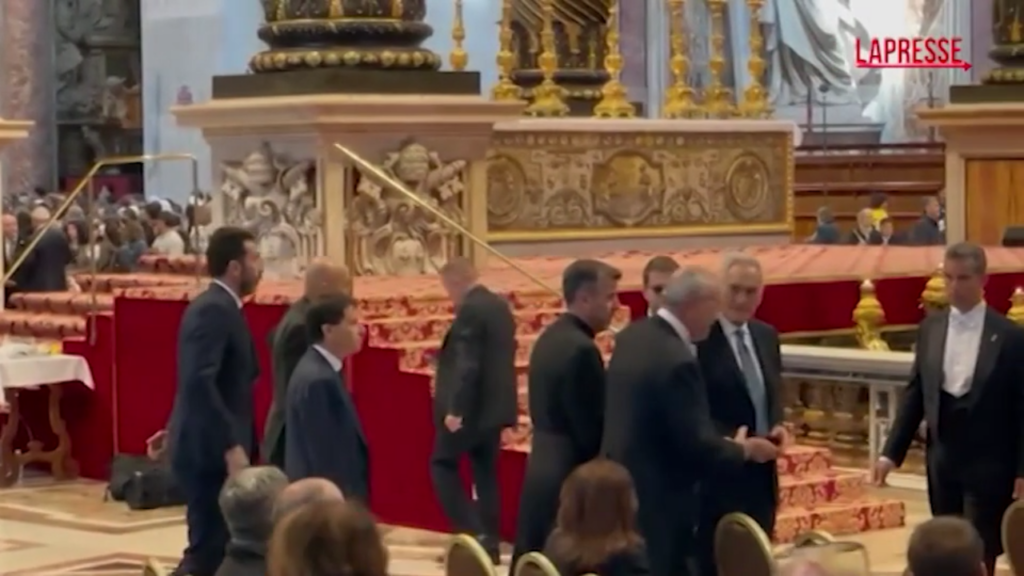 Il presidente della Figc Gabriele Gravina, il commissario tecnico della Nazionale Luciano Spalletti e il capodelegazione Gianluigi Buffon nella Basilica di San Pietro per rendere omaggio alla salma di Papa Francesco.
