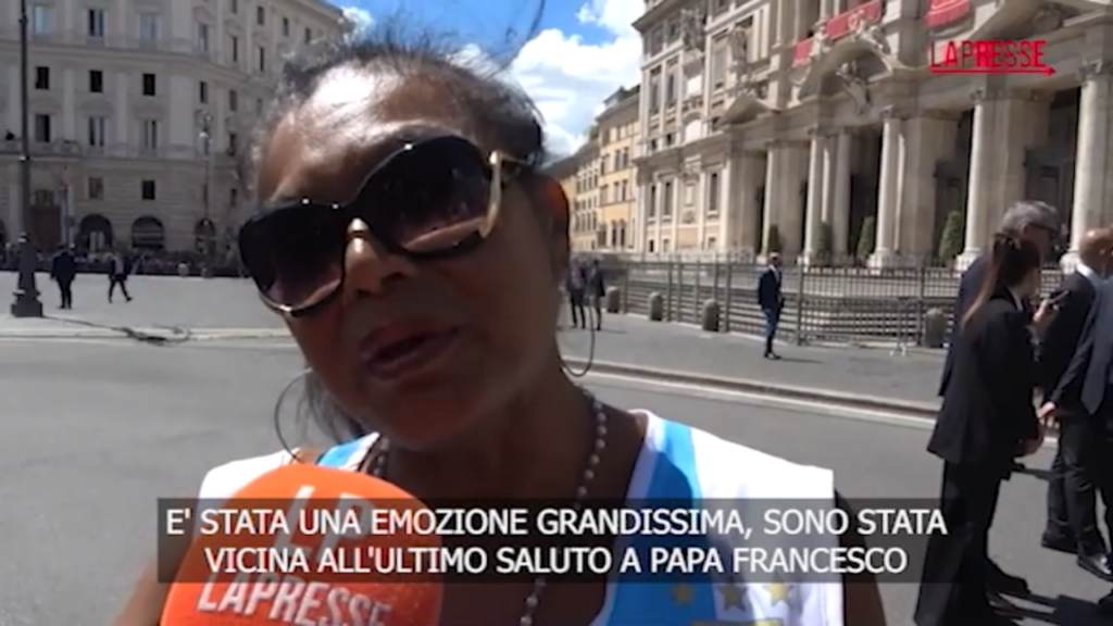 “E’ stata una emozione grandissima, ho potuto essere vicina all’ultimo saluto a Papa Francesco per ringraziarlo per le porte che ci ha aperto, dell’essere sempre presente con noi, spero che questo continui, perché così voleva e così sperò che sarà”. A parlare ai microfoni di LaPresse è Tamara, tra i 40 ‘figli prediletti’ di Papa Francesco che ha potuto assistere dal sagrato di Santa Maria Maggiore all’arrivo del corteo funebre del pontefice, successivo ai funerali a San Pietro. Ad accoglierlo, insieme a lei, donna trans, anche rifugiati, detenuti, persone in difficoltà e bambini, tutti con un fiore bianco in mano.