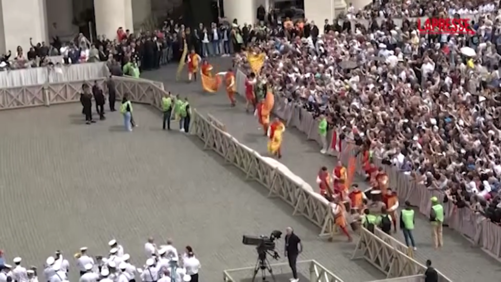 Un invito accolto dalle migliaia di fedeli accorsi in piazza con un lungo applauso. “Lui molto emozionato, e anche i pellegrini” dicono alcuni fedeli in piazza. Qualcuno è arrivato anche la maglia della Roma.