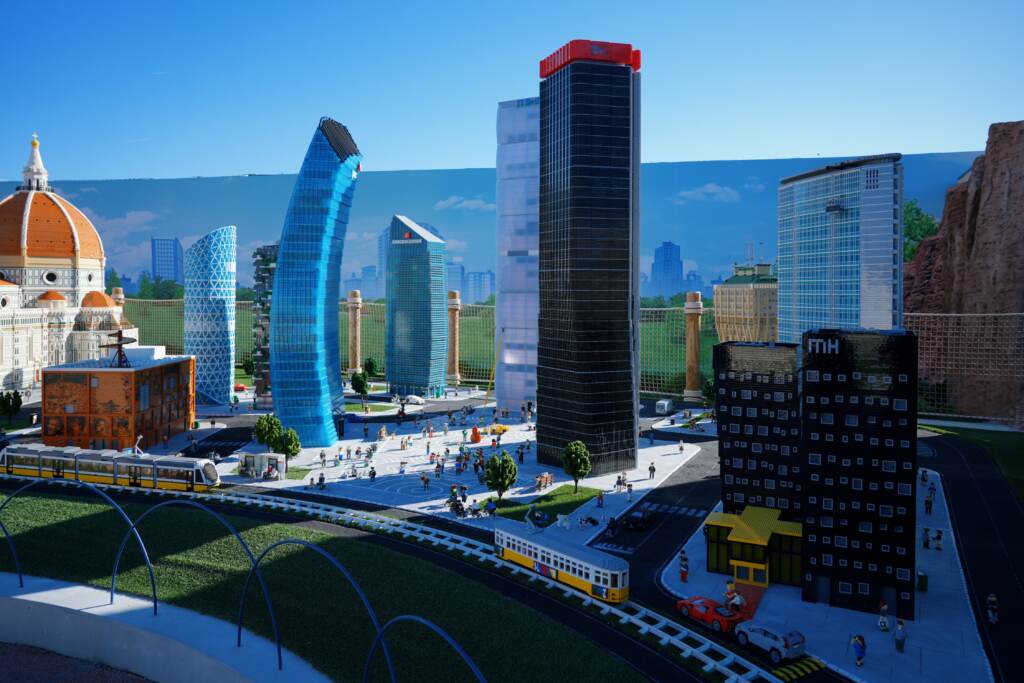 La novità 2023 nella Miniland di LEGOLAND® Water Park è rappresentata dagli 11 grattacieli dell’area Milano Moderna, tutti riprodotti in scala 1:20 e costruiti con circa 400.000 mattoncini LEGO®. Il “percorso” dedicato alla Milano Moderna prende vita dal cuore della metropoli con la simbolica Torre Velasca, per poi proseguire con l’iconico Grattacielo Pirelli, la colorata Torre Arcobaleno, fino alle prime costruzioni degli anni 2000 a nord di Milano come il Diamantone, il Bosco Verticale, Casa della Memoria e l’inconfondibile area commerciale di City Life con le sue tre torri: Isozaki (Allianz), Libeskind (PwC) e Torre Hadid (Torre Generali). Non mancano, inoltre, le più recenti costruzioni come la Torre UnipolSai e l’inconfondibile NH Hotel Fiera nell’immediata periferia, snodo cruciale per raggiungere la città meneghina ma vengono riprodotti anche i tanti lavoratori, turisti e cittadini che affollano quotidianamente il capoluogo ambrosiano. Immancabile anche il classico tram milanese.