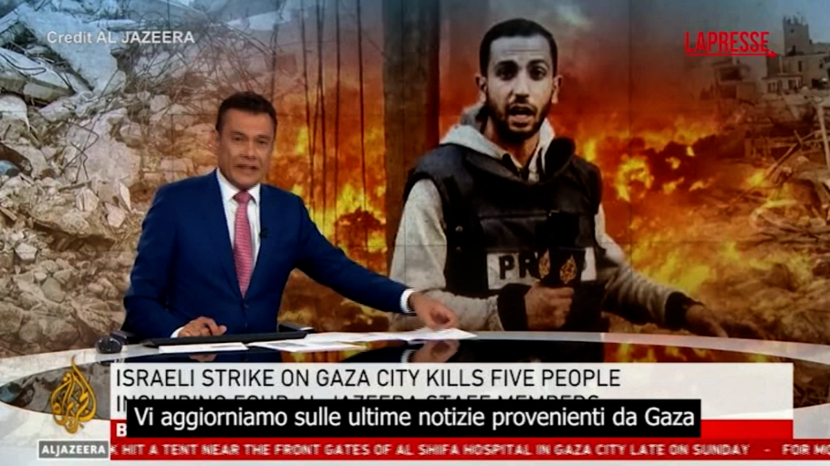 Al Jazeera annuncia la morte di quattro suoi giornalisti nella Striscia di Gaza, tra cui il corrispondente 28enne Anas al Sharif. I quattro sono rimasti uccisi domenica sera in un attacco di Israele che ha colpito la tenda dove si trovavano i reporter, all’esterno di un ospedale a Gaza City. L’esercito israeliano ha confermato la notizia accusando al-Sharif di essere un membro di Hamas che “si era fatto passare per giornalista”, cosa che al-Sharif aveva negato. Insieme al 28enne sono stati uccisi altri tre giornalisti e un autista. In questo video il presentatore di Al Jazeera che ha riportato la notizia ha affermato che quattro giornalisti dell’emittente “sono stati uccisi in un attacco mirato da parte di Israele”.