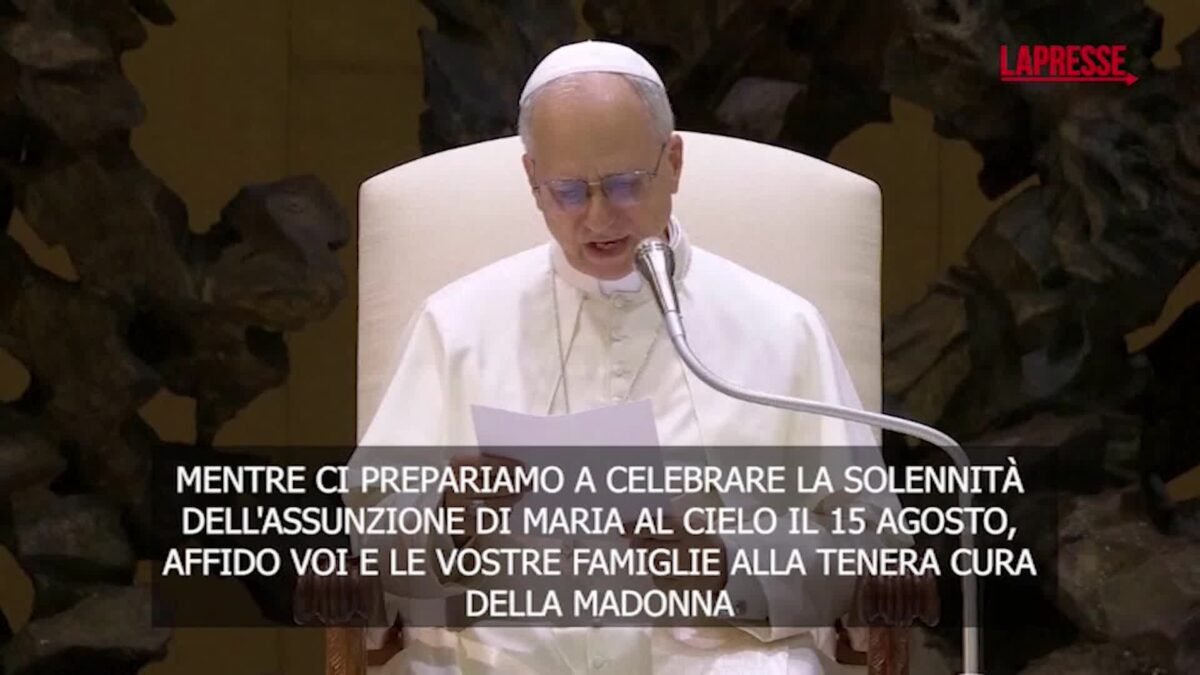 Papa Leone XIV ha tenuto l’udienza generale nella sala Paolo VI in Vaticano. In vista della solennità dell’Assunzione del 15 agosto, ha affidato i fedeli alla cura della Madonna. Il Pontefice ha invocato consolazione e forza per tutti attraverso l’intercessione di Maria. Ha concluso impartendo la benedizione e augurando pace e gioia in Cristo.