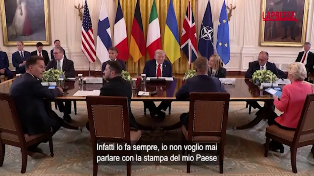 Polemiche per il fuori onda della presidente del Consiglio Giorgia Meloni catturato dai microfoni dopo il vertice alla Casa Bianca tra Donald Trump, Volodymyr Zelensky e i leader europei. Mentre i giornalisti escono dalla East Room, il presidente finlandese Alexander Stubb si rivolge a Trump e gli dice, con riferimento alle domande dei cronisti: “Tu affronti questo ogni giorno, eh?“. E la premier, rispondendo a Stubb, commenta: “A lui piace, a lui piace sempre” colloquiare con i cronisti. “Io non voglio mai parlare con la stampa del mio Paese”, aggiunge.