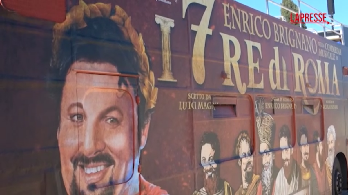 (LaPresse) Un autobus scoperto e una guida turistica d’eccezione. Enrico Brignano porta la stampa in tour per la città la stampa, per promuovere la seconda stagione teatrale de ‘I 7 re di Roma‘, la commedia musicale scritta da Gigi Magni e musicata da Nicola Piovani, storicamente interpretata dal maestro Gigi Proietti. Lo spettacolo, una settimana fa, è stato premiato con “Il biglietto d’oro”. “Un tour nel tour. Abbiamo utilizzato questo autobus un po’ simbolico, a due piani e che porta molte persone, per fare questo viaggio teatrale. Un viaggio nella Storia, fra la leggenda e la realtà”. Così Brignano, parlando con LaPresse a margine del giro. “Siamo in un contesto storico così complicato – spiega l’attore – e la gente ha sicuramente voglia di allentare un po’ la tensione venendo per due ore a teatro, facendo un tuffo nella fantasia e realtà”. “Perché parlare della Storia oggi? Perché è giusto lasciare testimonianze”, spiega Brignano, secondo cui “perché quando non si ha memoria della Storia non si ha memoria di niente”, raccontando come “i primi spettatori sono stati i miei figli”. “I figli hanno bisogno di storie, perché sono piccoli e non sanno nulla. è giusto che qualcuno gliele insegni”. In questo senso, conclude quindi l’attore, “credo che questo e altri spettacoli possano servire a insegnarci che prima di questa realtà che abbiamo oggi ce n’erano altre”.